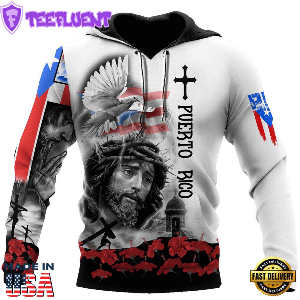 Puerto Rico Jesus Dove Cross Maga Flower God 3D Hoodie Gift Xmas