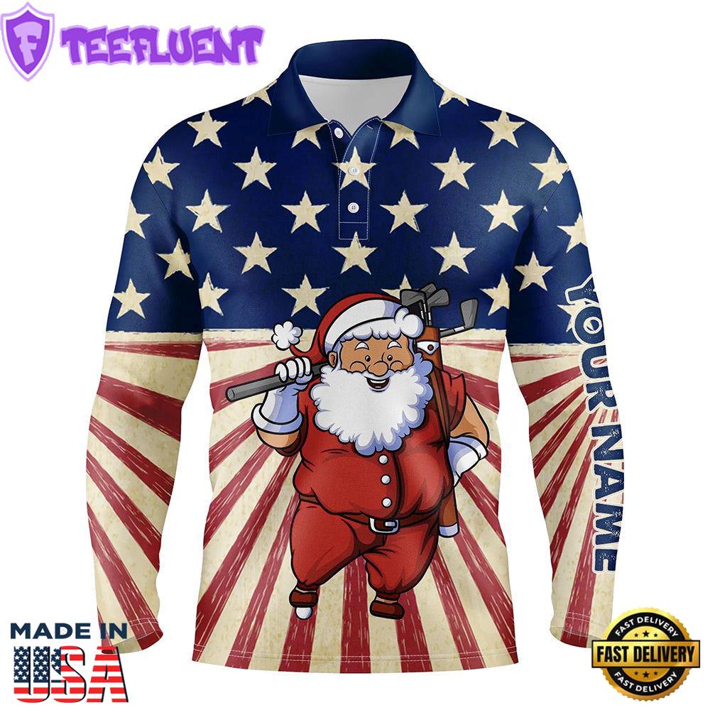 Santa Christmas Vintage American Flag Mens Golf Polo Shirts Funny Gift Xmas