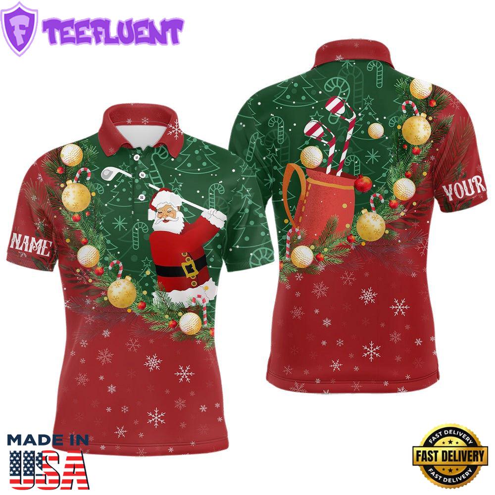Santa Playing Golf Red Green Christmas Mens Golf Polo Shirt Custom Gift Xmas