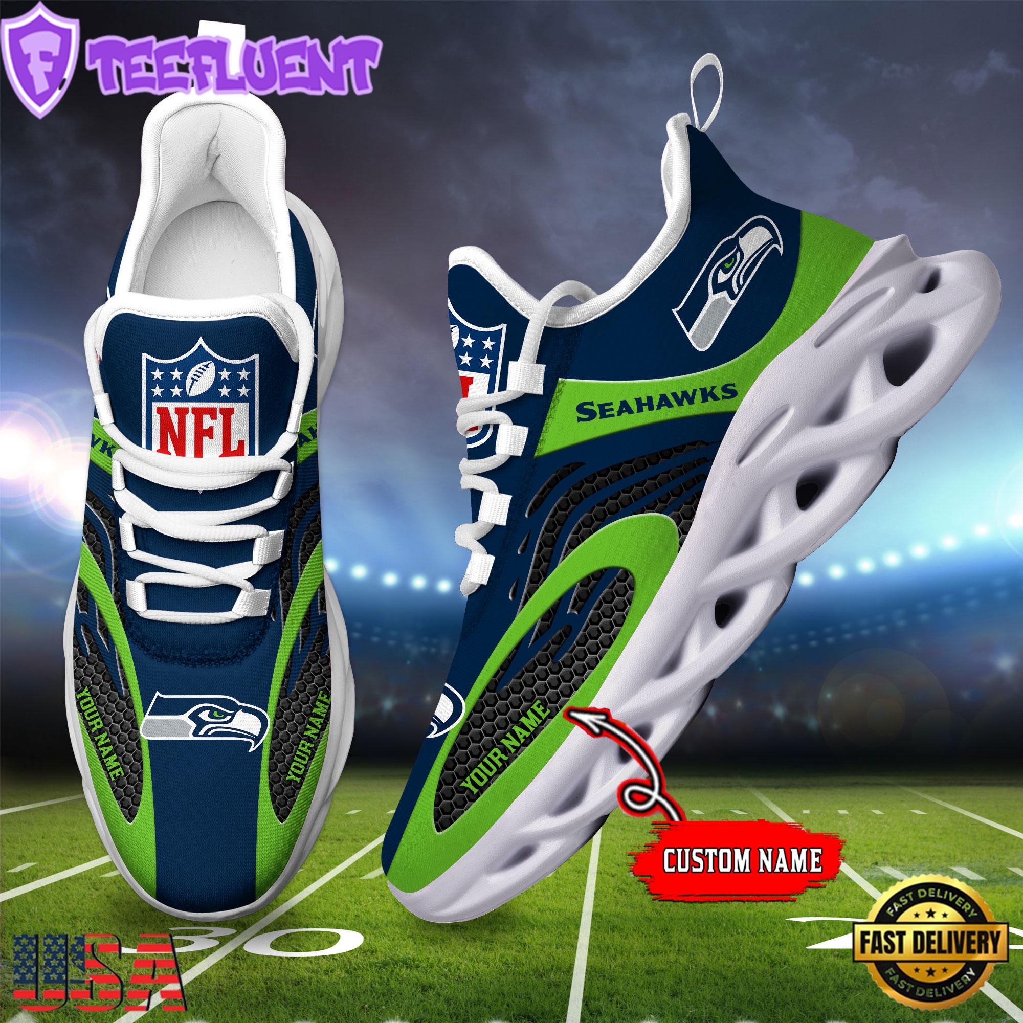 Seattle Seahawks Custom Name NFL Limited New Design Max Soul Shoes , Running Sneakers Shoes