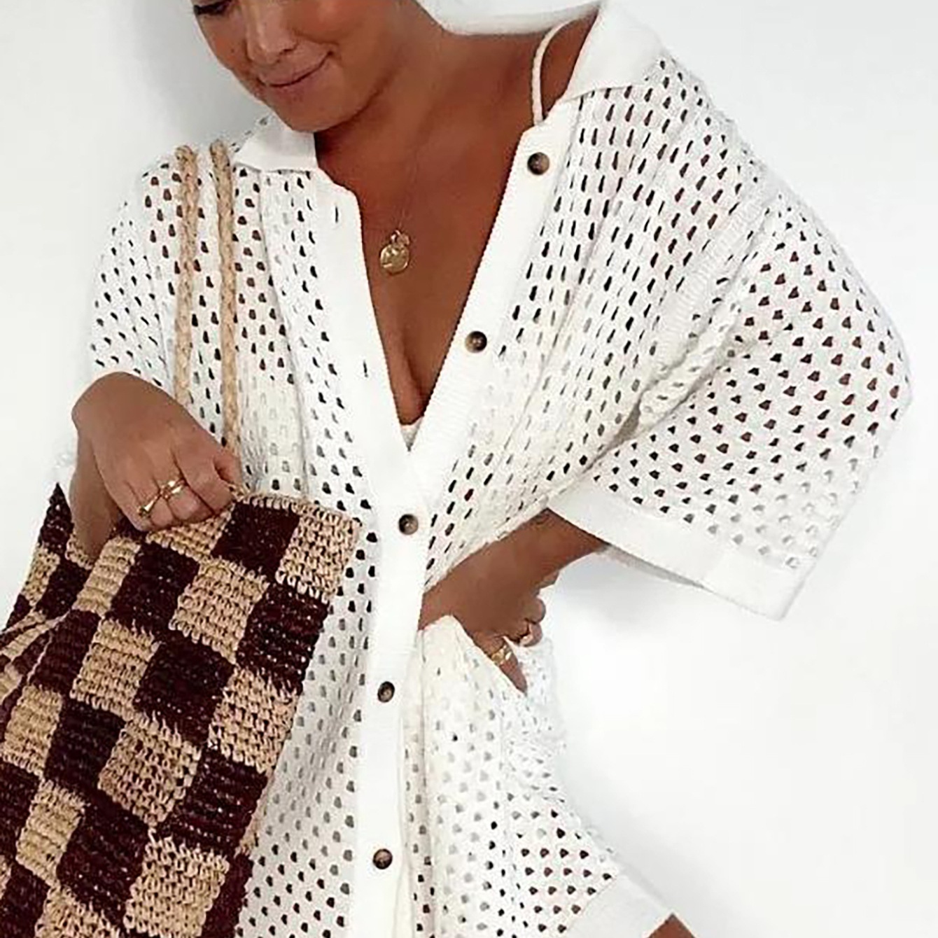 Be the first to review “Spring And Summer Leisure Hollow Lapel Short Sleeve Cardigan”