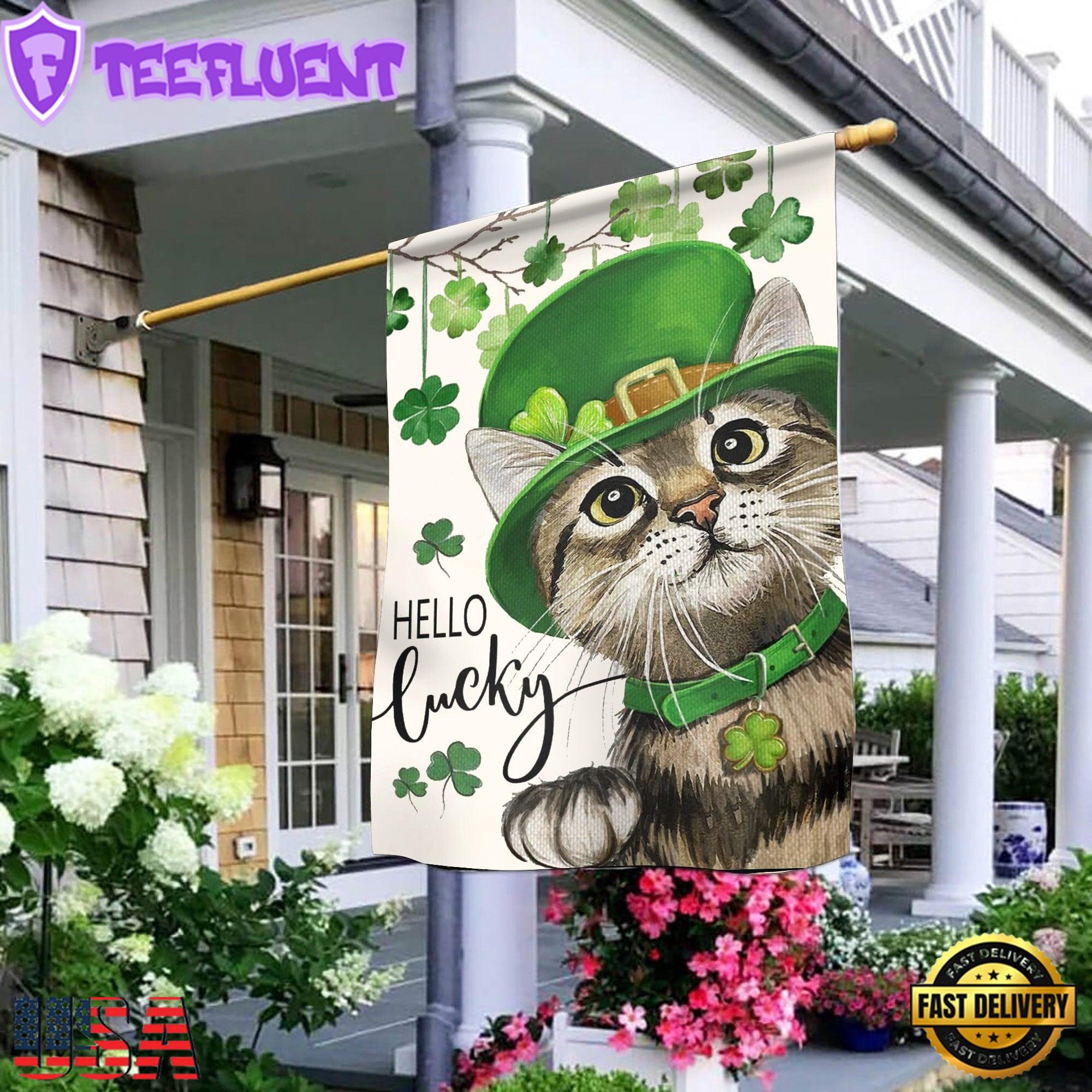 St. Patricks Day Hello Lucky Kitten Cat And Shamrock CloverOutdoor Flags, Garden Flags