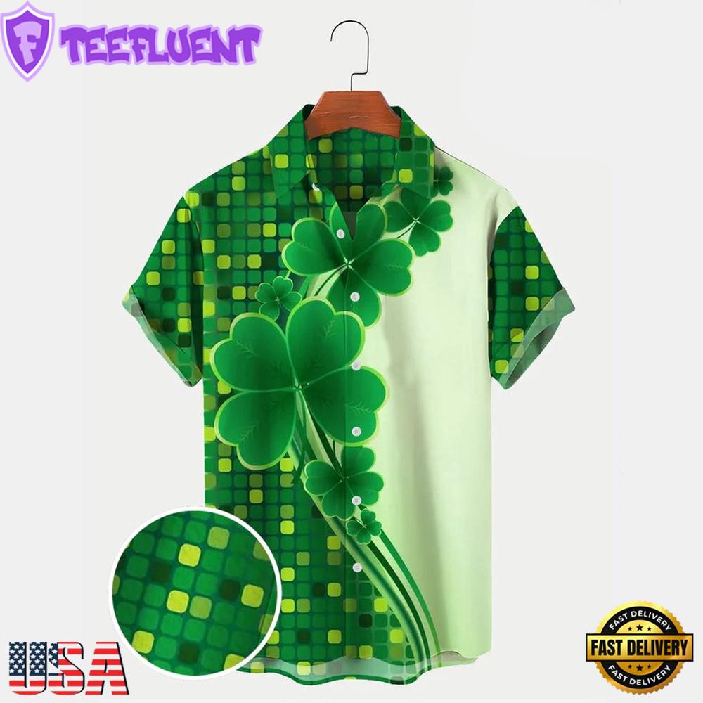 St. Patrick’S Day Shamrock Print Mens Hawaiian Shirt , Vintage Hawaiian Shirts