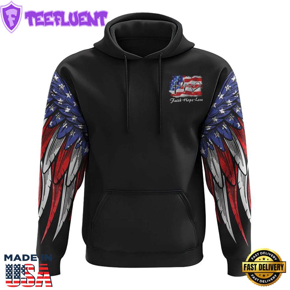Stand For The Flag Kneel For The Cross American Flag Wings Arm 3D Hoodie Gift Xmas
