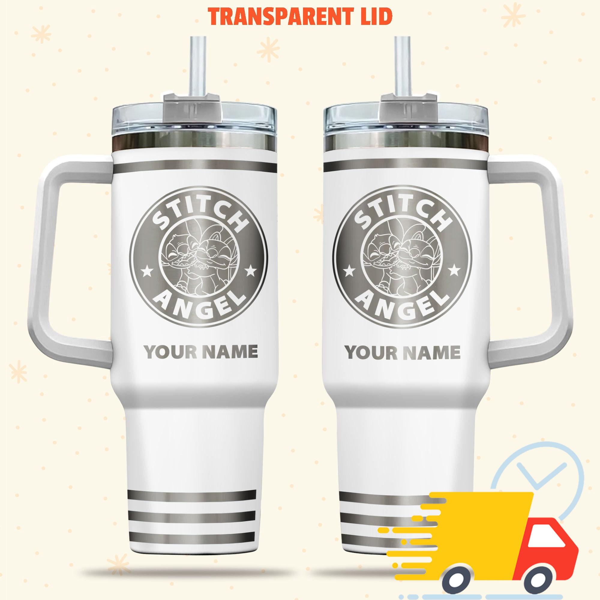 Stitch And Angel Disney Cartoon Custom Stanley Quencher 40oz Stainless Steel Tumbler With Handle For Fans