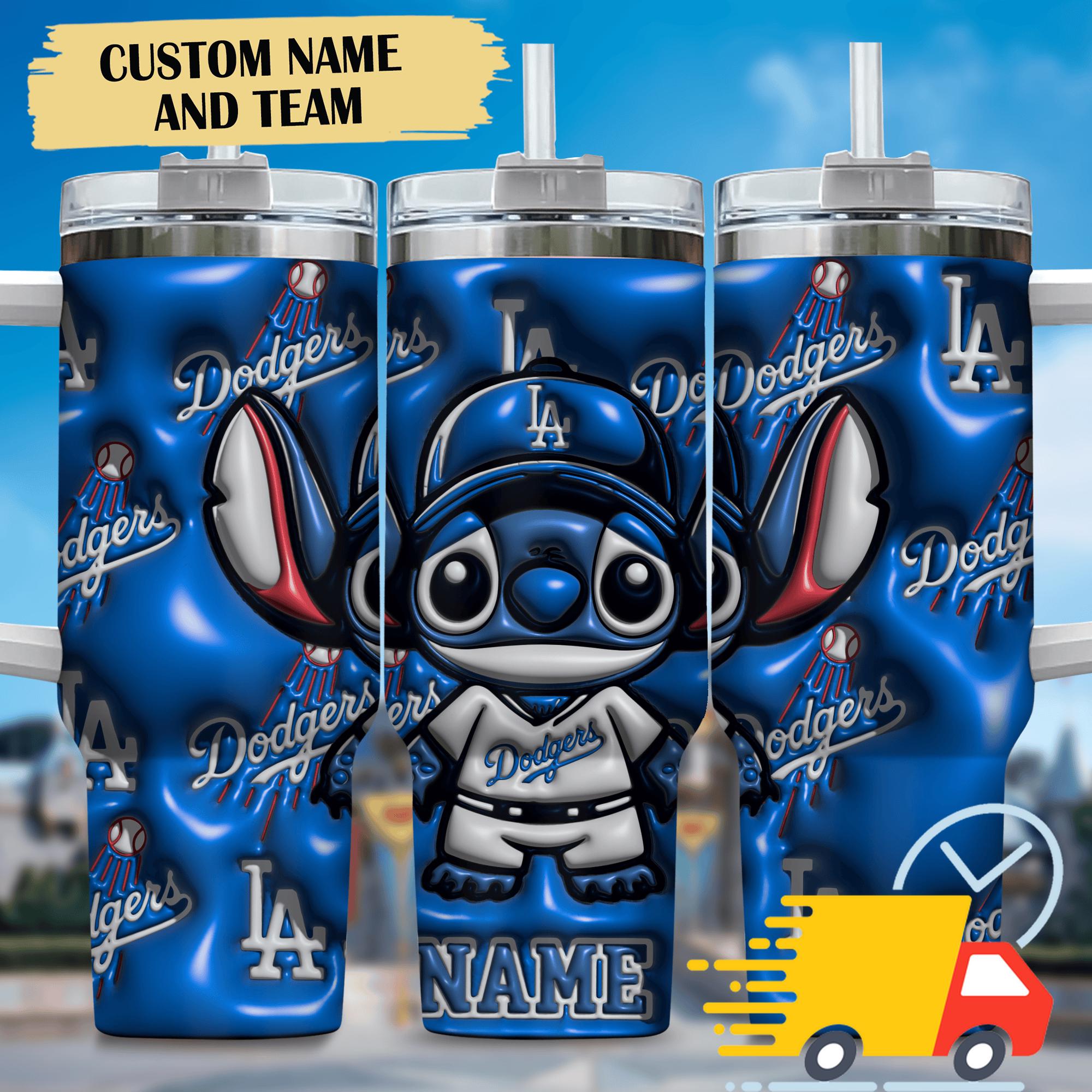 Photos Of Stitch and Los Angeles Dodgers Cartoon,MLB Custom Stanley Quencher 40oz Stainless Steel Tumbler With Handle For Fans