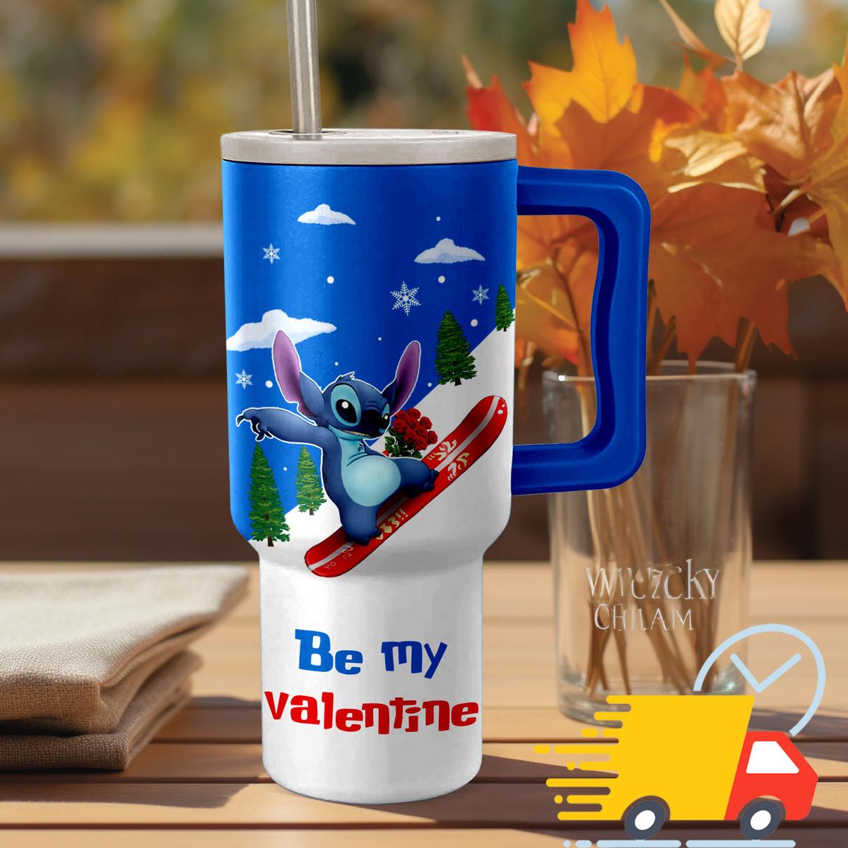 Stitch Be My Valentine Disney Cartoon Custom Stanley Quencher 40oz Stainless Steel Tumbler With Handle For Fans