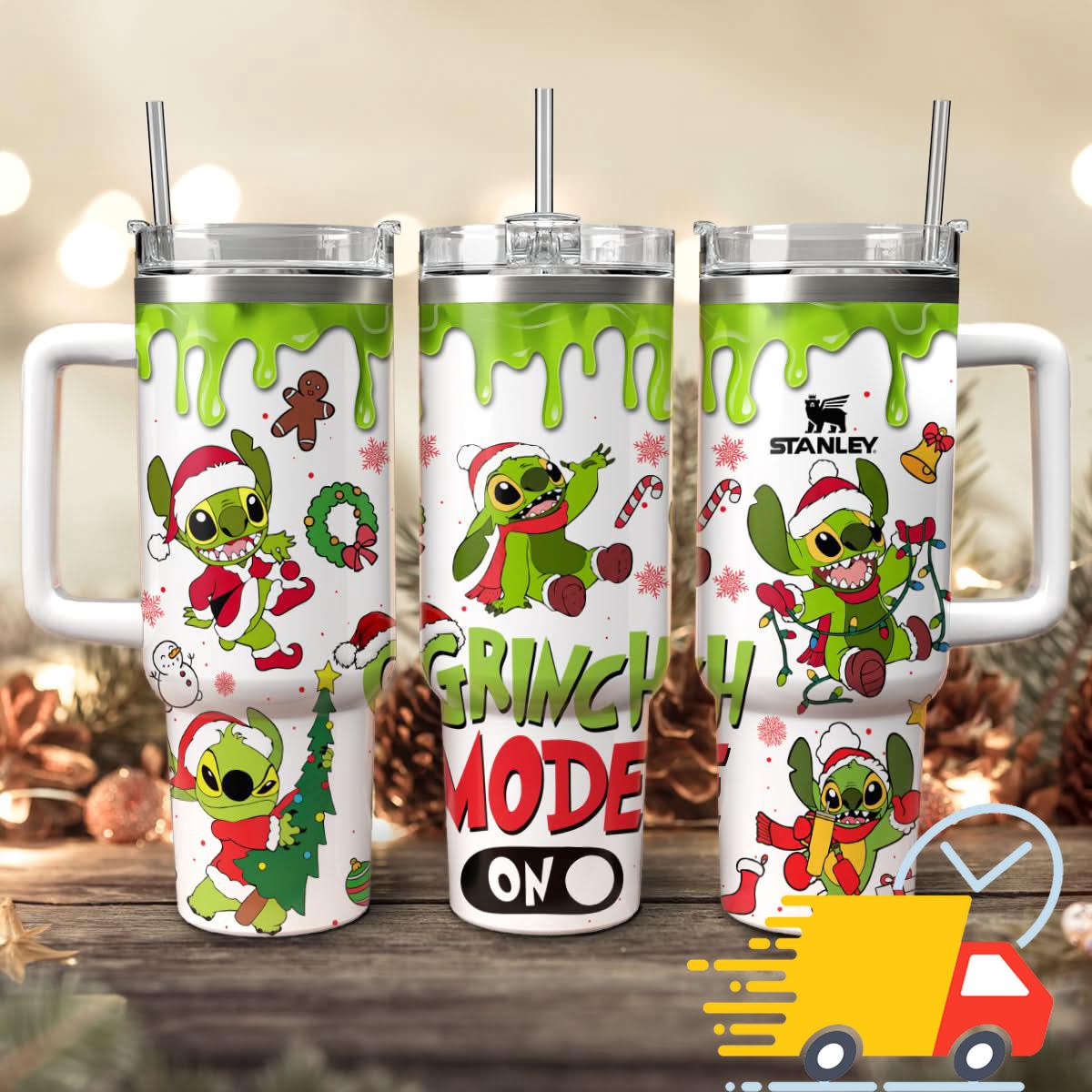 Stitch Cosplay Grinch Cartoon Christmas Custom Stanley Quencher 40oz Stainless Steel Tumbler With Handle For Fans