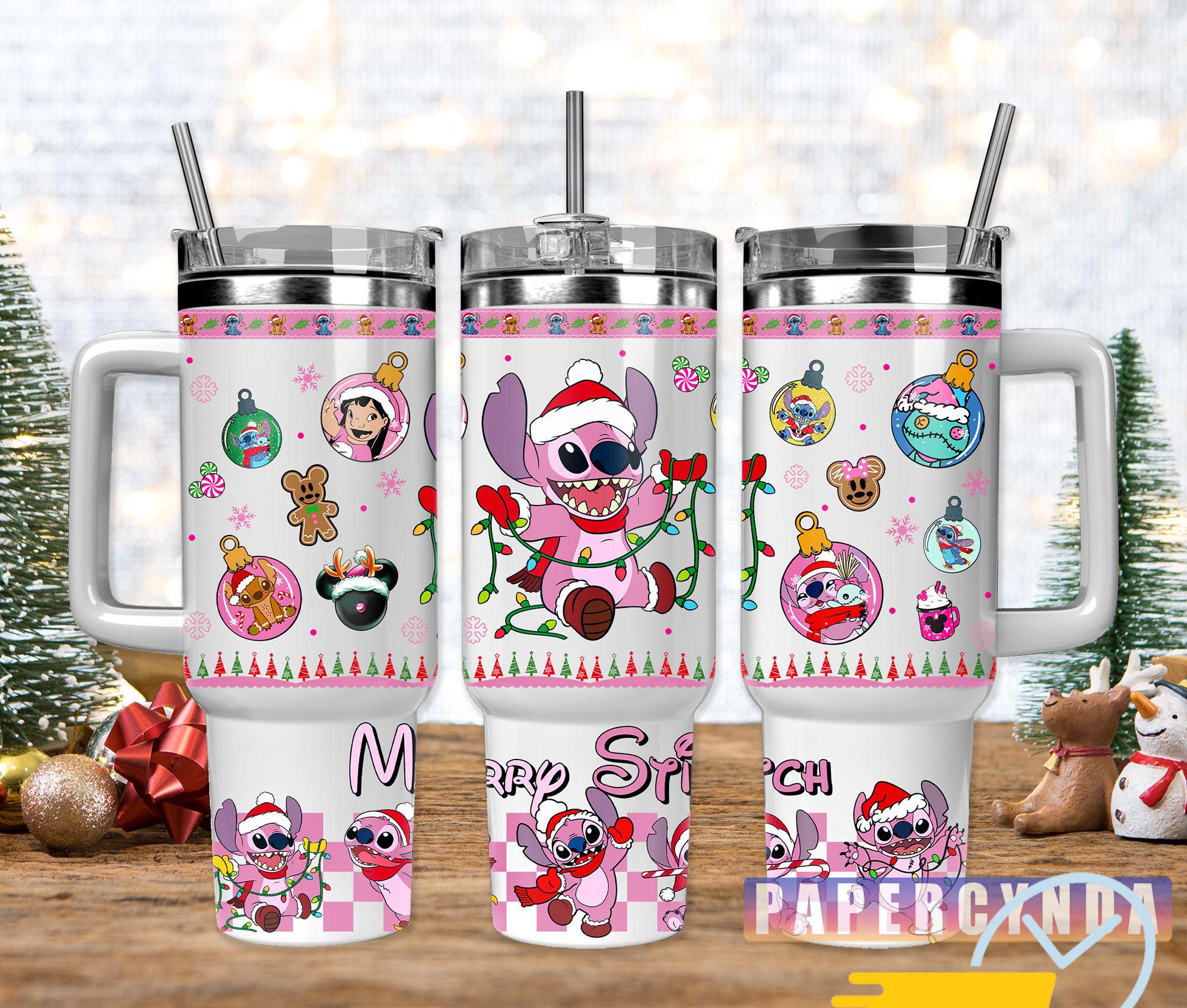 - Stitch Cartoon Christmas Custom Stanley Quencher 40oz Stainless Steel Tumbler With For Fans