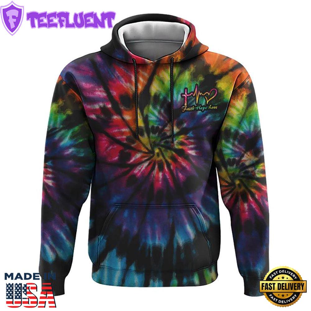 Sunflower Cross Full Tie Dye Faith 3D Hoodie Gift Xmas
