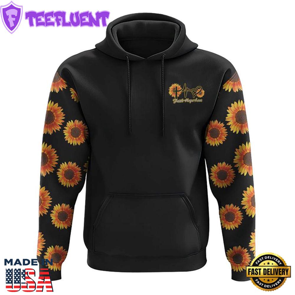 Sunflower Faith Cross Light Wings 3D Hoodie Gift Xmas