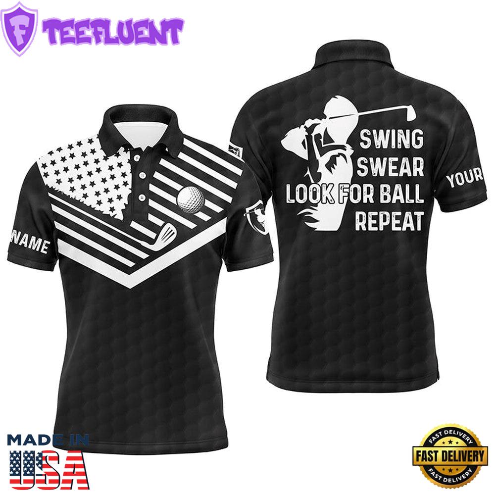 Swing Swear Look For Ball Repeat American Flag Custom Name Team Golf Polo Shirts Black Gift Xmas
