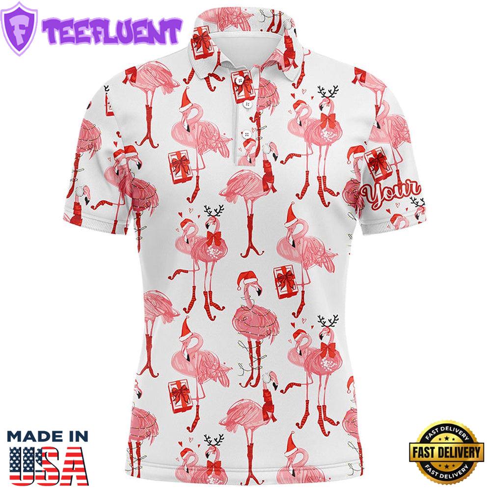 Tropical Winter Watercolor Flamingos Mens Golf Polo Shirt Christmas Gift Xmas