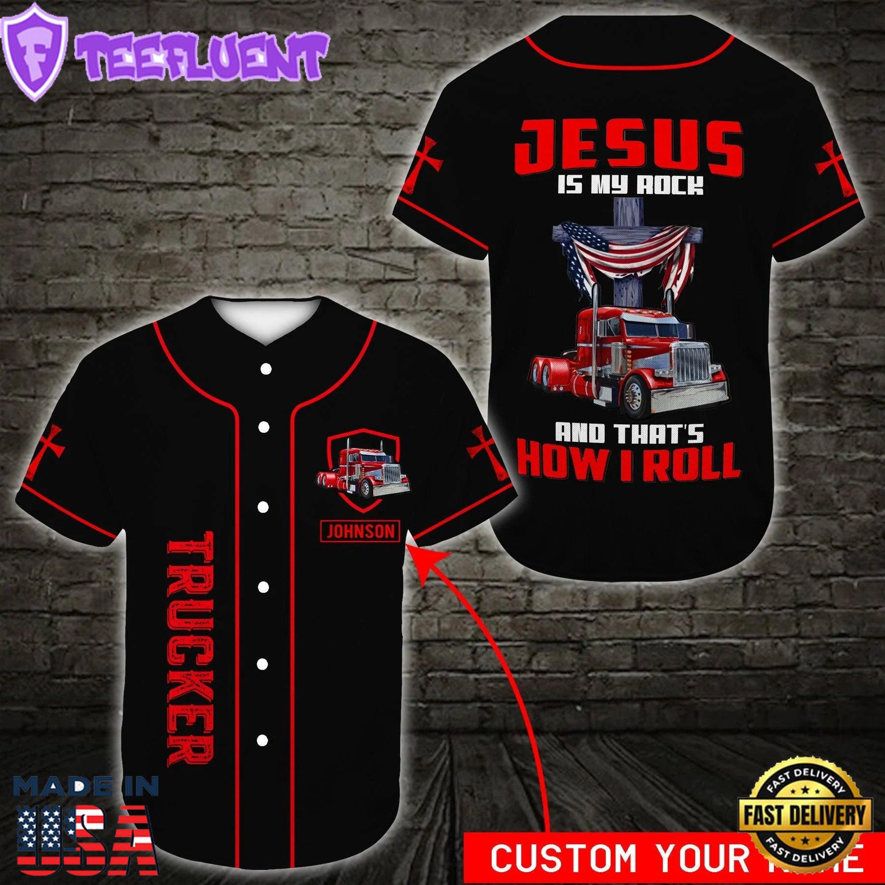 Trucker Jesus Is My Rock Cross Custom Baseball Jersey Christian Baseball Jersey