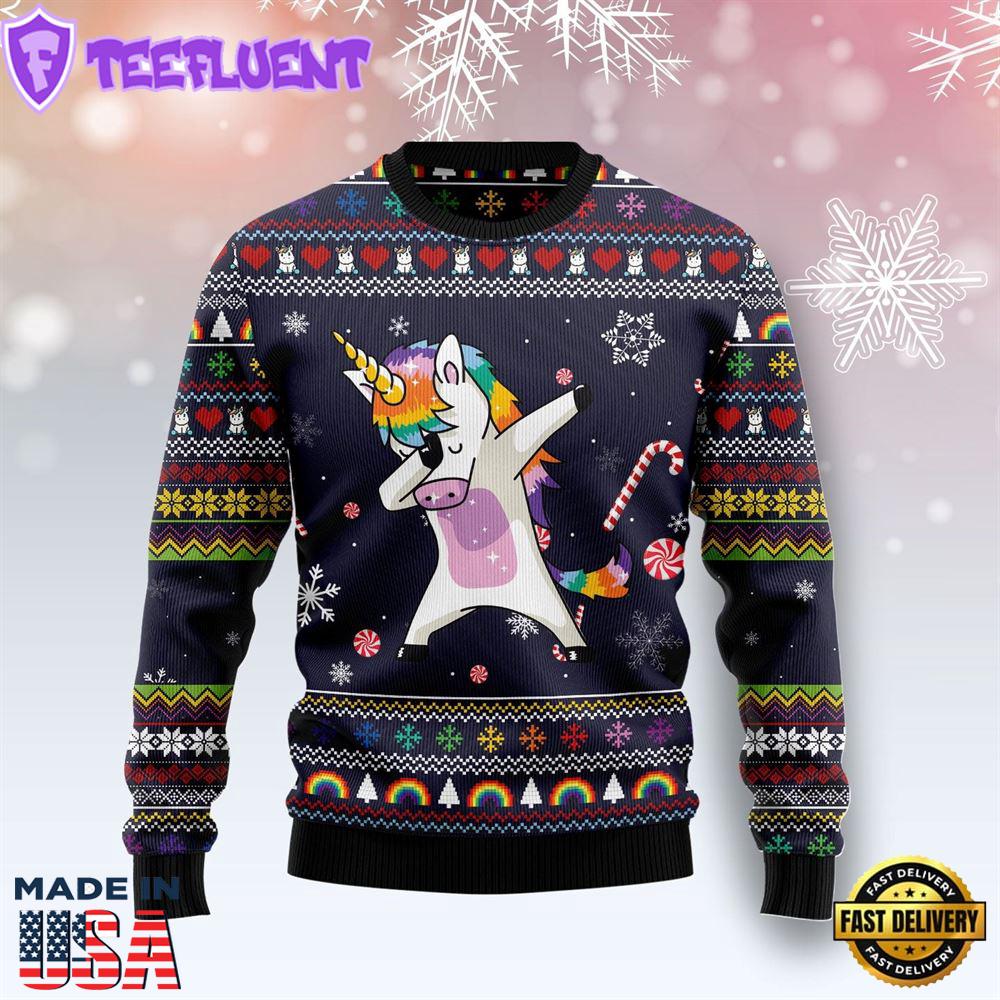 Unicorn Dab With Candy Ugly Christmas Sweater Amazing Festival Style Gift Xmas Get into the festive spirit with our Ugly Christmas Sweater! Made from soft, cozy fabric, it offers warmth and comfort while showcasing fun, colorful holiday designs. Perfect for Christmas parties, family gatherings, or casual wear, this sweater spreads cheer and laughter all season long.