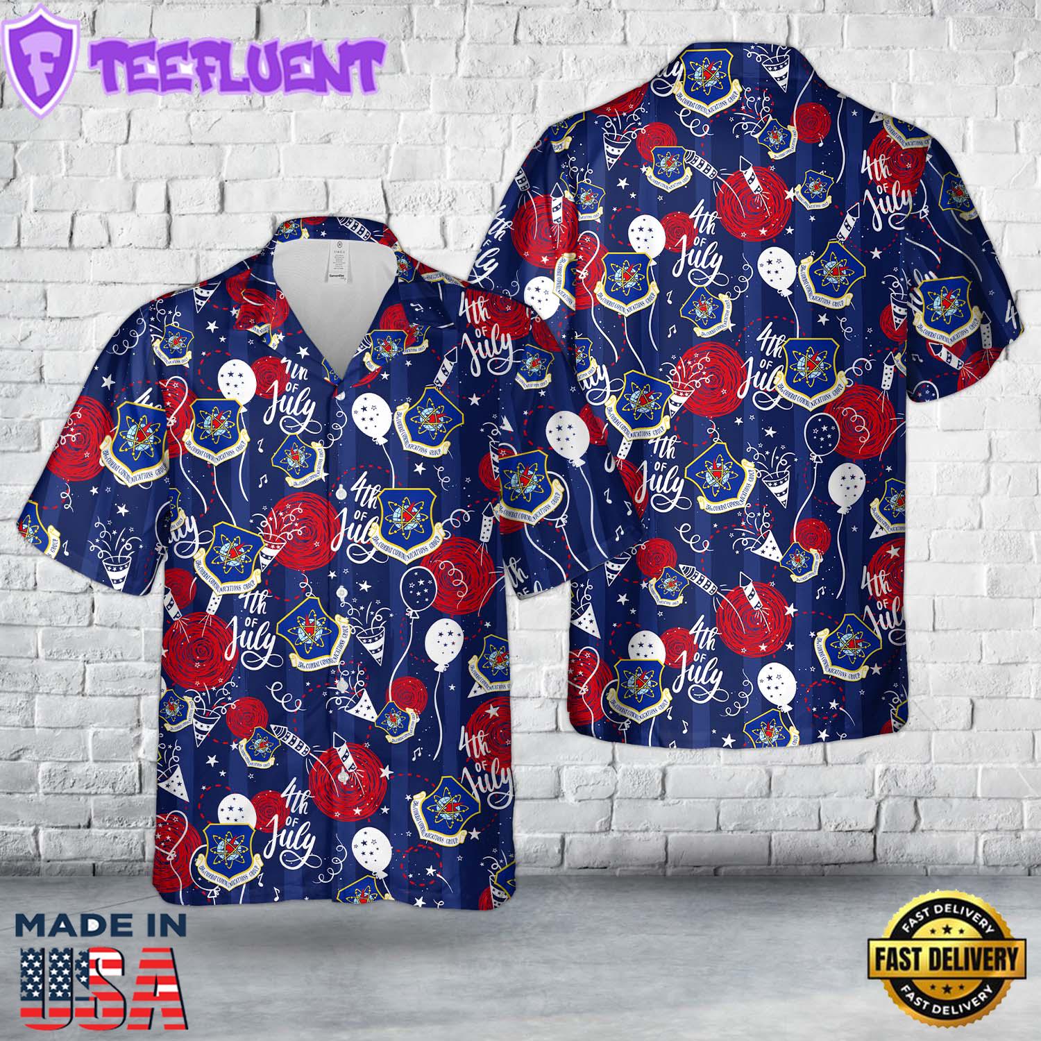 Photos Of US Air Force Texas Air National Guard 254th Combat Communications Group, 4th Of July Hawaiian Shirt VET
