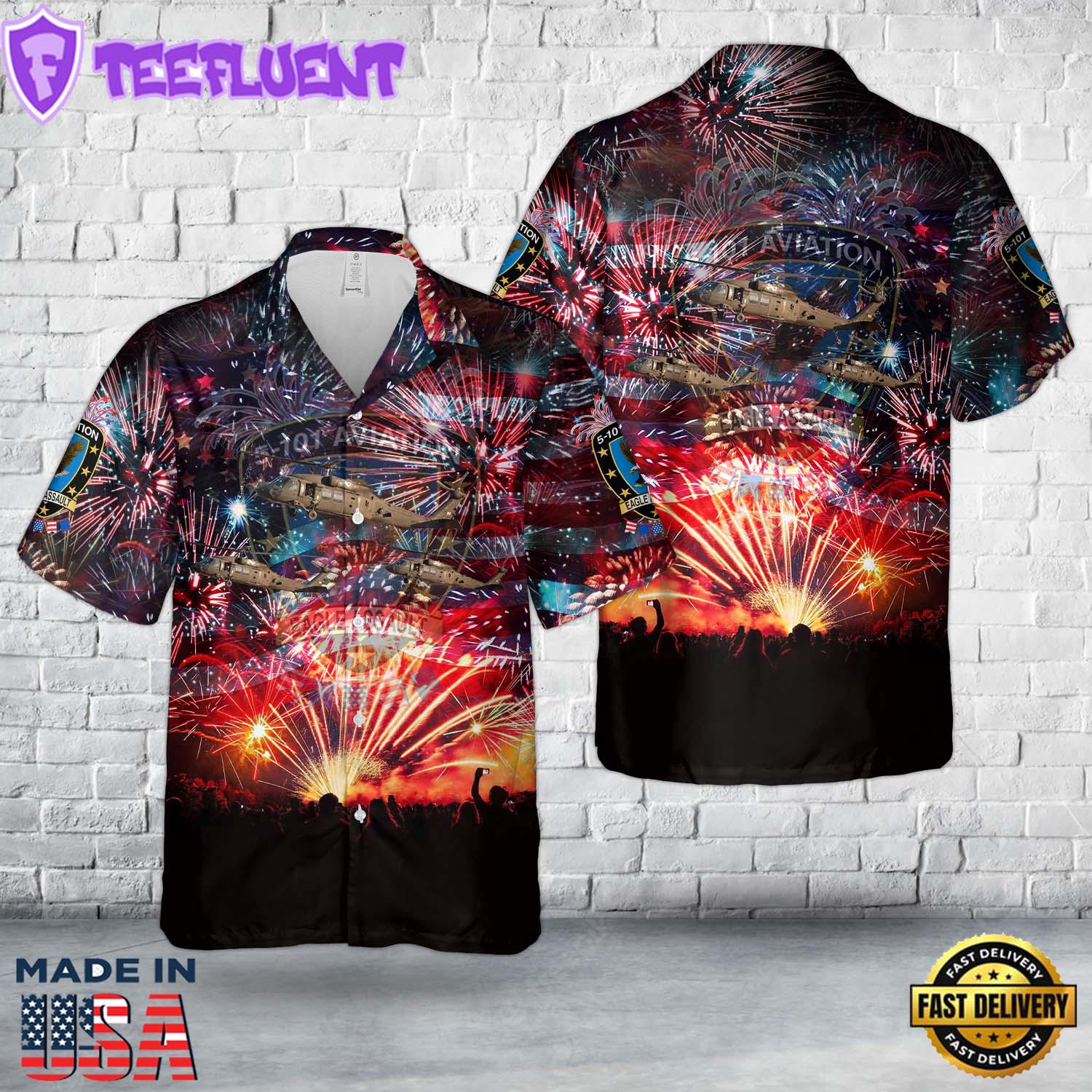 Photos Of US Army 5-101, 5th Battalion, 101st Aviation Regiment Eagle Assault, 4th Of July Hawaiiian Shirt VET