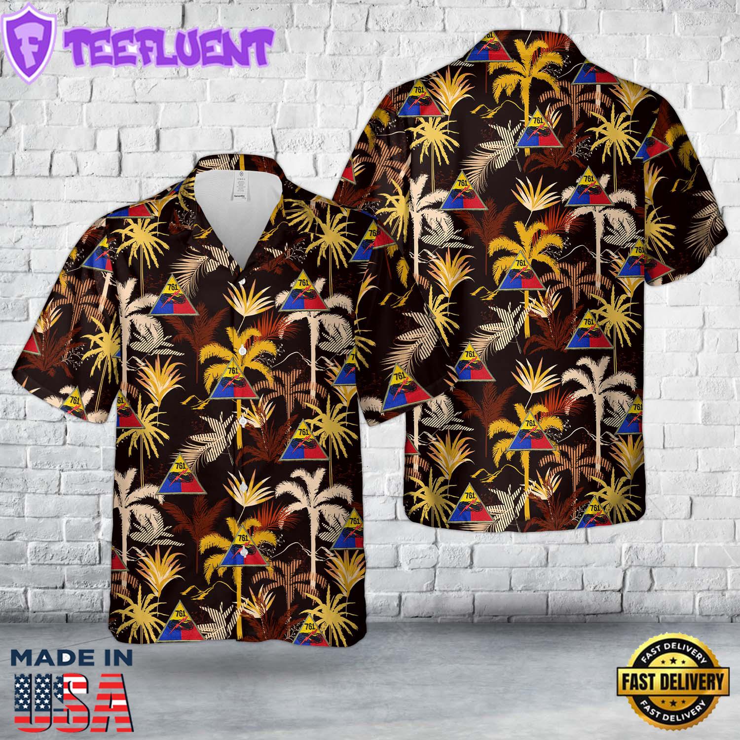 US Army Hawaiian Shirt, WWII US Army 761st Armor Tank Regiment Hawaiian Shirt