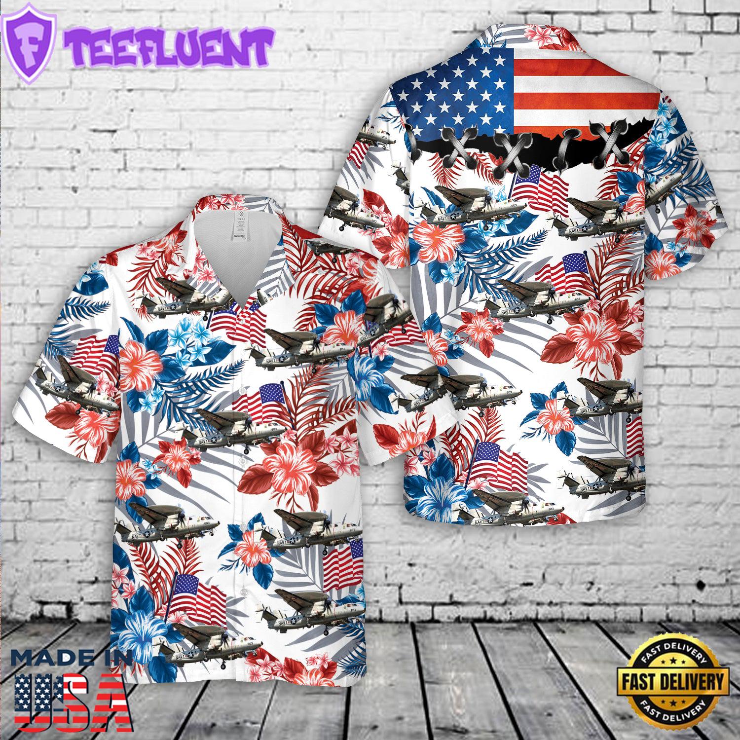 US Navy Northrop Grumman E-2C Hawkeye, 4th Of July Hawaiian Shirt Gift Veteran Day