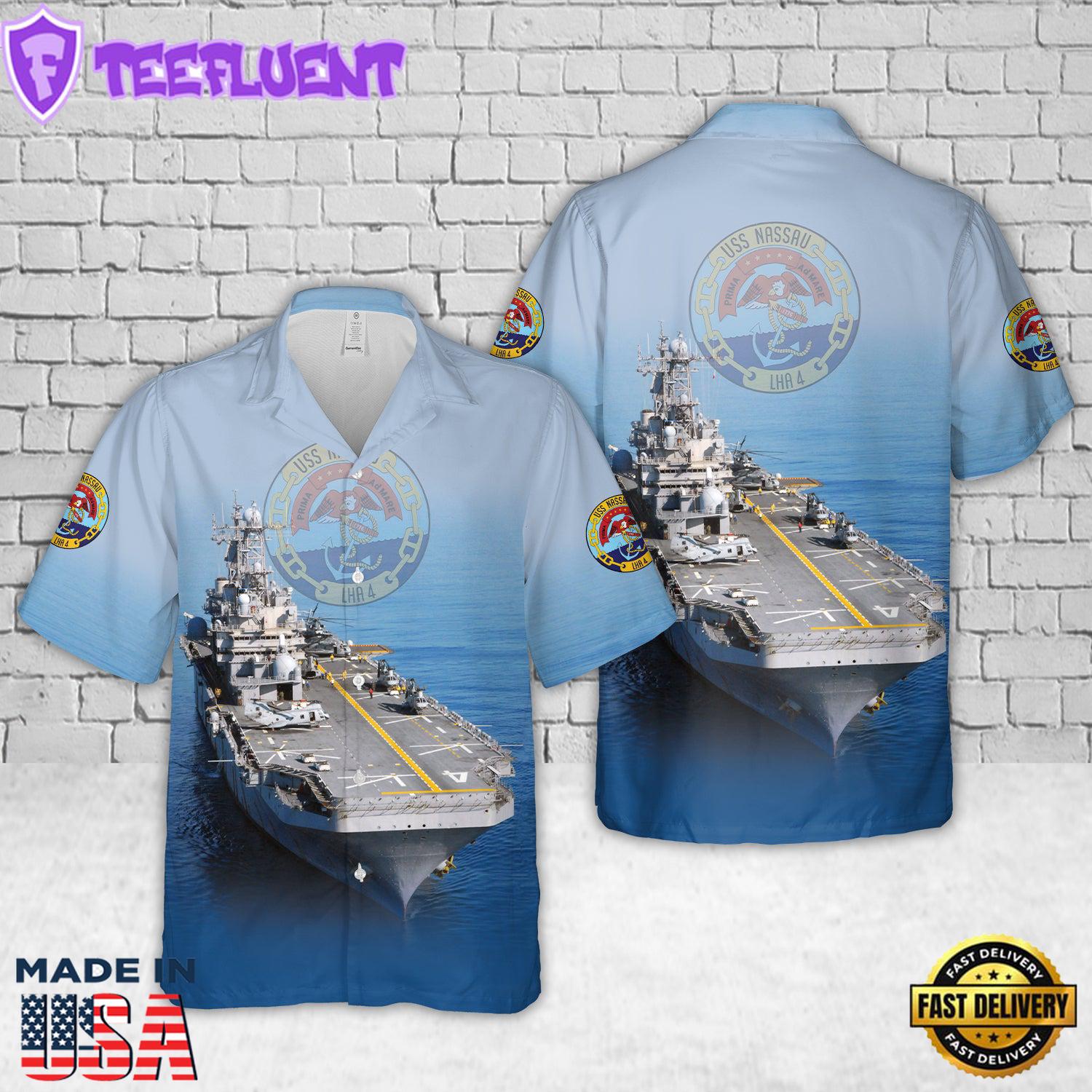 Photos Of US Navy USS Nassau (LHA-4) Tarawa-class amphibious assault ship Hawaiian Shirt Gift Summer