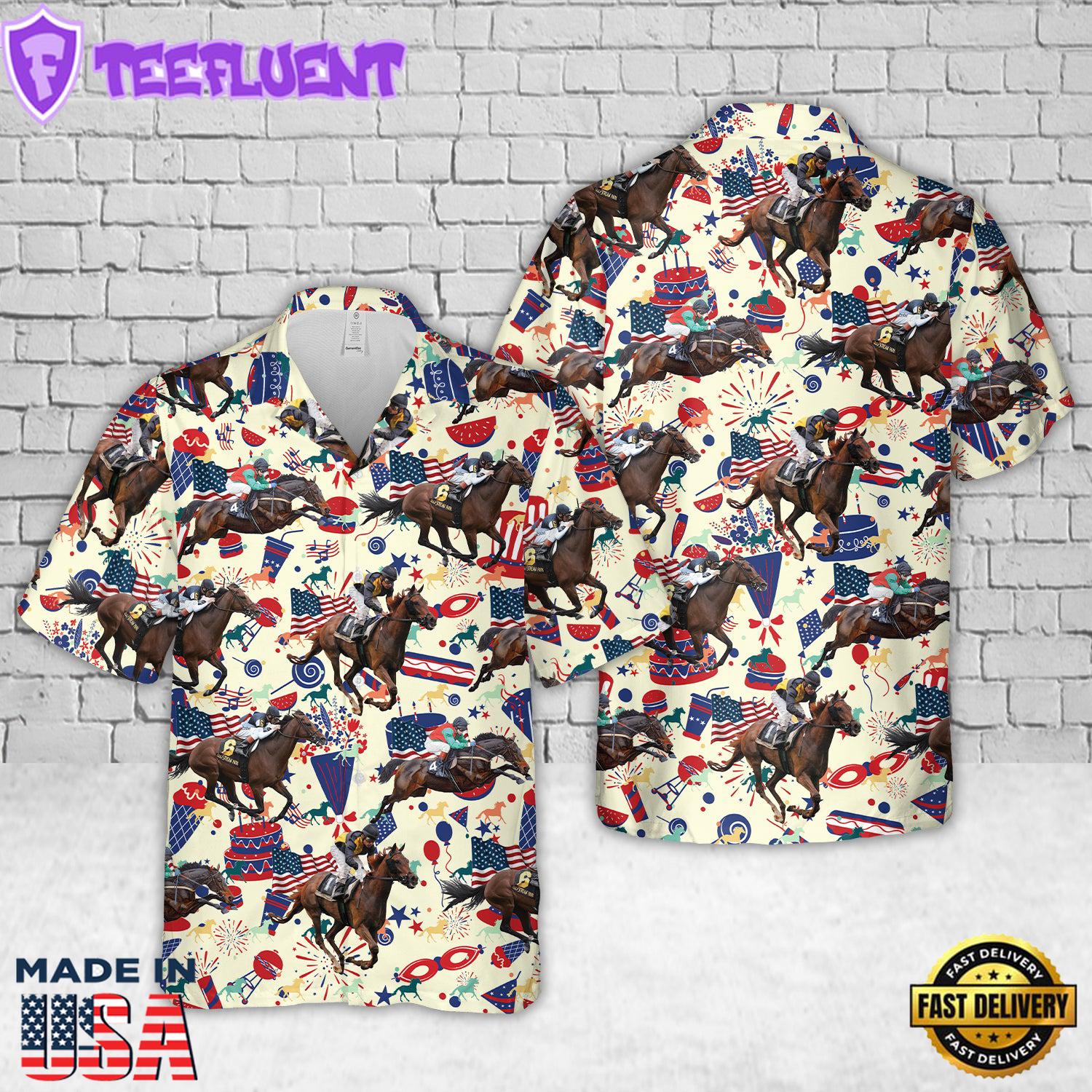 US Thoroughbred Horse Racing, 4th Of July Hawaiian Shirt Gift Veteran Day