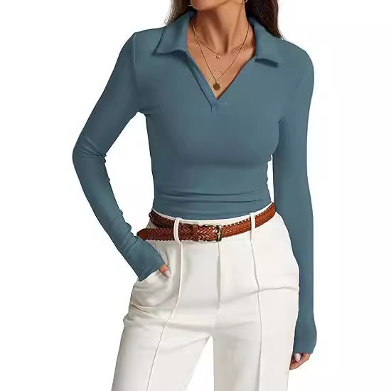 V-neck Slim-fit Casual Basic Pleated Top