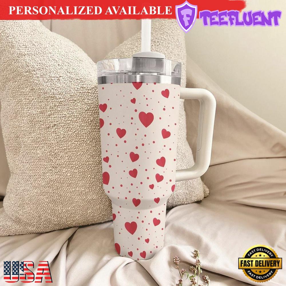 Photos Of Valentine’s Day 40oz with Handle and Straw Pink Hearts Tumbler , Gift For Valentine’s Days