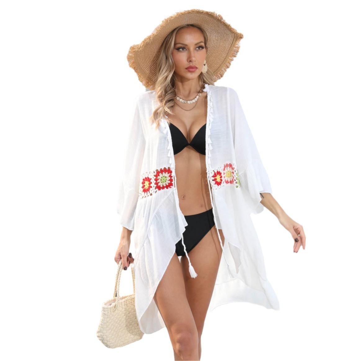 Women’s Beach Cover-up Hand Hook Flower Stitching