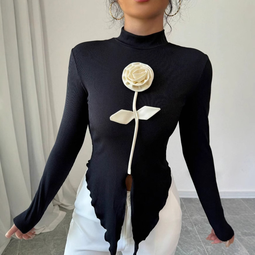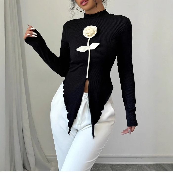 Women’s Three-dimensional Flower Slim Long Sleeve Top